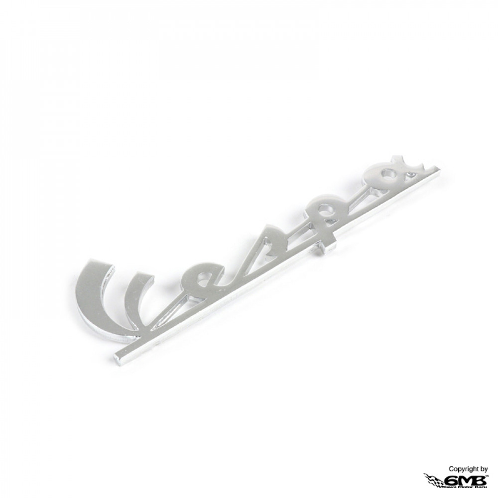 Badge "Vespa", legshield for Vespa 50 Revival / 150 Sprint/V VLB1T → 0172650/Super VBC1T → 216812/180 Rally/200 Rally VSE1T → 10823 also for Vespa 125 VNB6T → 3350 chrome, fixation: 2 pins, pin distance: 100mm, 120x35 mm