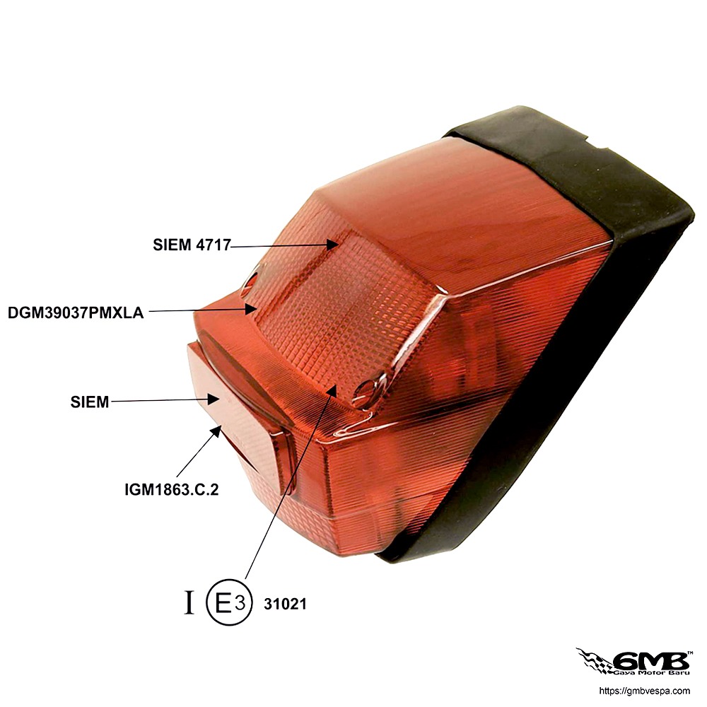 Rear Light SIEM for Vespa PX, rear light socket: Ba15s, brake light socket: Ba15s, w/o bulbs, incl. gasket, black DGM mark on glass/e-mark on reflector, incl. black rear light cover Grade A