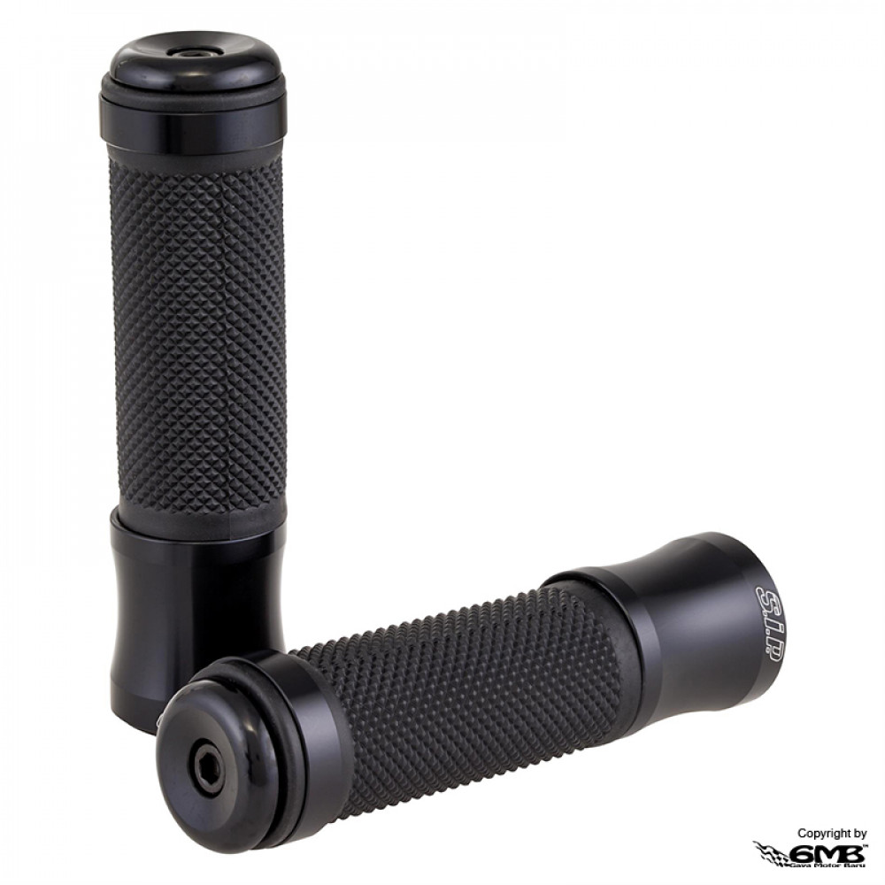 Grips SIP for Vespa P80-150X/PX80-200E/ Lusso/'98/MY/P200E/P150S, aluminium, black brilliant, Ø 24/24 mm, l 125 mm, with opening at handle-bar end, incl. ends